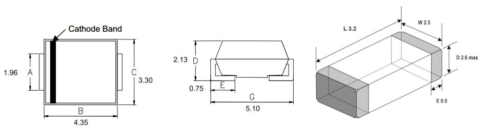 下图是贴片压敏电阻对TVS替代的尺寸图,从图上可以看出,用高能贴片压敏电阻能大大的节省布线空间, 因为是一颗高能贴片压敏电阻对三颗TVS管的替代,体积缩小为原先的1/10不到,而通流也至少是5倍TVS的通流以上。